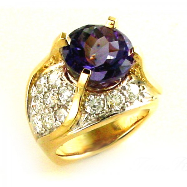 Set in 18k yellow gold this 7+ carat tanzanite found its home with good company, joining 2 carats of pave set diamonds.