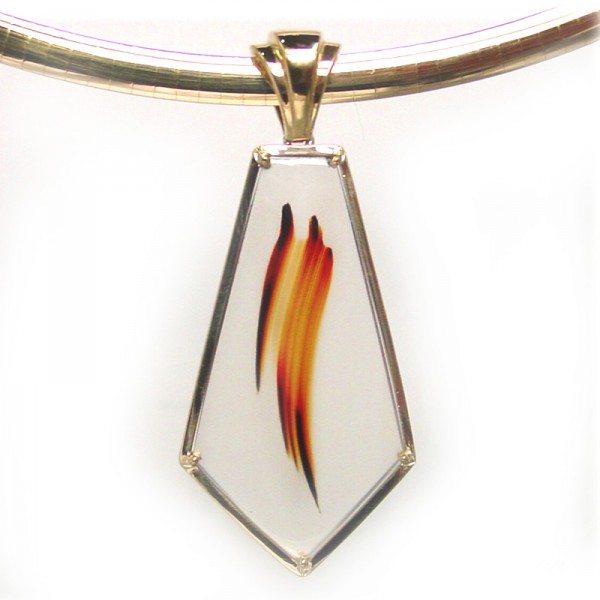 This stunning agate was cut by our customers dad and left to her. It had sat in a box for years, but now is proudly displayed in this simple setting for her omega chain.